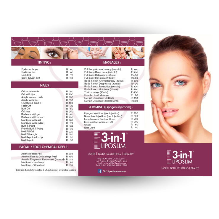 This flyer, 100 in pack, tri-fold double sided A4 brochure, 128 gsm HiQ Titan Paper, matt